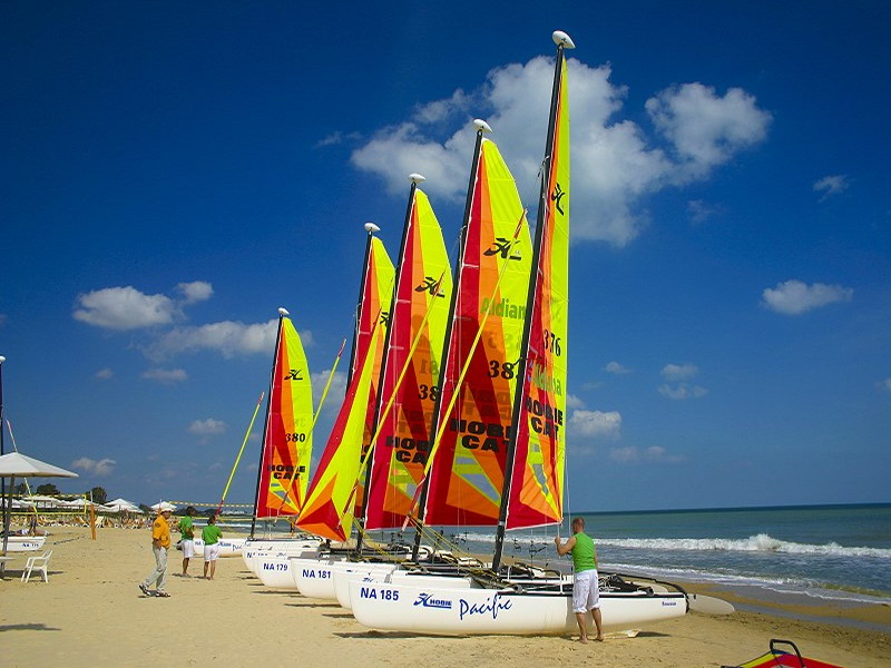 Inklusive: 10 Tennis-Sandplätze Sandplätze (4 mit Flutlicht gegen Gebühr),. Fitness-Center, Aerobic, Nordic Walking, Indoor-Cycling, Verleih von Surfboards und Katamaranen. Beach-Volleyball, Beachsoccer, Streetball, Bogenschießen. Golfübungsanlage mit 2 Übungs- Greens, Putting Green und Netz- Range, Schnupperstunden in allen Sportarten.