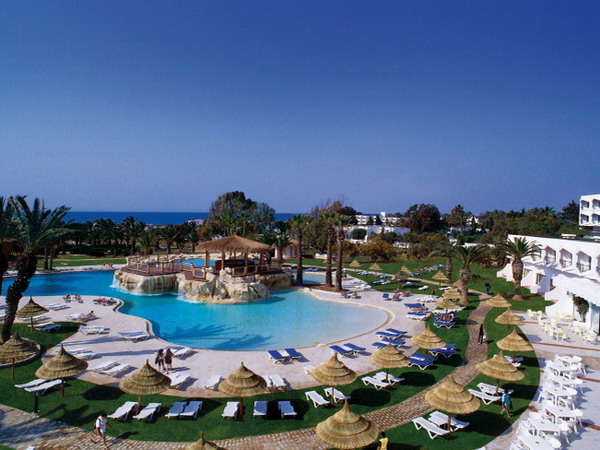 Direkt am Sandstrand von Hammamet, in einem weitläufigen Garten. Zum Zentrum von Hammamet sind es ca. 5 km, Taxistand und Bushaltestelle befindet sich vor der Anlage.