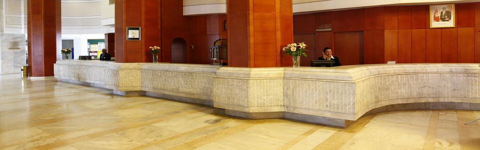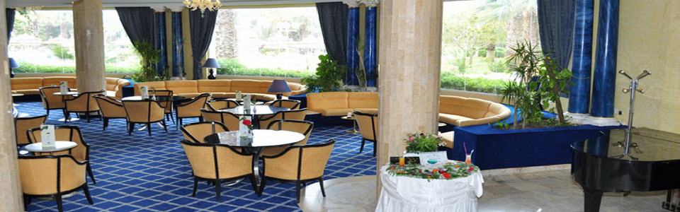 sehr eindrucksvolle Empfangshalle, Rezeption, 4 Lifte, Bars, Nichtraucherrestaurant und A-la-Carte-Restaurant, maurisches Café, Snackbar, Bridgeraum, Boutique, Friseur, Internetecke mit WLAN (kostenlos) und Hallenbad. In der Gartenanlage befindet sich der Swimmingpool mit Sonnenterrasse. Liegen und Sonnenschirme am Pool und am Strand inklusive. Poolbar.