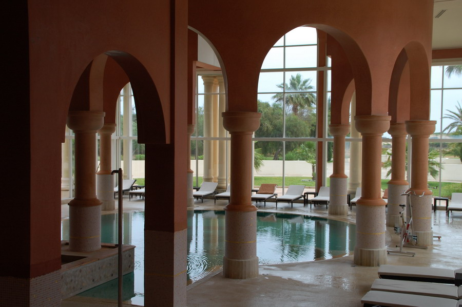 ein Palast im arabisch-andalusischen Stil, sehr geschmackvoll in Architektur und Farbgebung inmitten einer mediterranen Parklandschaft mit traumhaftem Blick auf das Meer. Die luxuriöse Einrichtung besticht durch seine harmonische Mischung aus exotischen Hölzern und Antiquitäten. Das Residence ist eines von 3 „Leading Hotels of the World" in Nordafrika und das einzige in Tunesien. Die Anlage ist ein Ort der Ruhe, Erholung und Entspannung. Mediterranes Restaurant mit Außenterrasse, mehrere a-la-Carte-Restaurants (orientalisch, chinesisch und Wellnessrestaurant mit Bio-Kost), edles und großzügiges Foyer mit Sesselgruppen, Pianobar, W-LAN,einigen Boutiquen, Lifte, Parkplätzen.