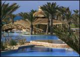 Unterkunft Die exklusive und architektonisch beeindruckende Anlage liegt in einem weitläufigen Palmengarten direkt am Hotel eigenen Strand. Zu den Einrichtungen zählen Hauptrestaurant, mediterranes a-la-Carte Restaurant, tunesisches a-la-Carte Restaurant, Snack-Barbecue Restaurant, maurisches Café und Lobby-Bar. Boutique, Friseur. Nightclub.Gepflegte Gartenanlage mit großzügiger Poollandschaft (3.400 qm) bestehend aus Meerwasser-, Süßwasser- und Thermalpool (eisenhaltig). Poolbar. Sonnenschirme, Liegen mit Auflagen und Badetücher am Pool und am Strand sind frei. Temperierbares Süßwasser-Hallenbad.
