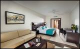 Doppelzimmer Die modern eingerichteten und sehr geräumigen Zimmer bestehen aus Bad/WC, Klimaanlage (im Sommer zentralgesteuert), Safe, WLAN, Minikühlschrank, Telefon, Balkon oder Terrasse, teilweise mit direkten oder seitlichen Meerblick buchbar. Familienzimmer Mit gleicher Ausstattung wie die Doppelzimmer, jedoch verfügen sie über einen zusätzlichen Wohnraum miteinem Sofabett, teilweise mit direkten oder seitlichen Meerblick buchbar. Prestige Suite Gleiche Ausstattung wie die Doppelzimmer verfügen die Suiten über einen integrierten Wohnraum mit Sofa und einem Ankleidezimmer, einem Jacuzzi im Badezimmer so wie mit direktem Meerblick